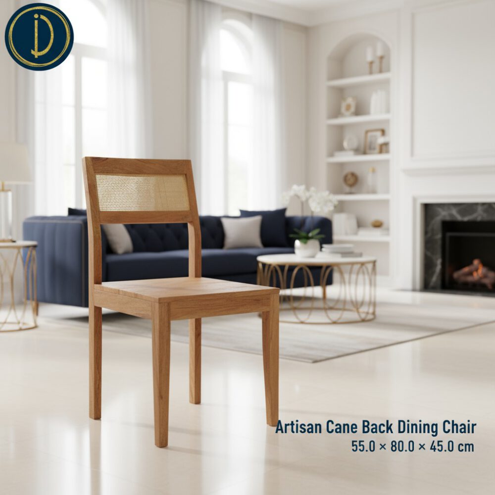 The defining feature of this chair is its beautifully woven cane back panel. This traditional technique, executed by our skilled artisans, adds a touch of organic texture and sophisticated visual interest. The breathable cane invites a sense of lightness and airiness, making it a perfect accent for both modern and classic interiors. It’s this blend of robust wood and delicate cane that truly makes it a conversation piece.