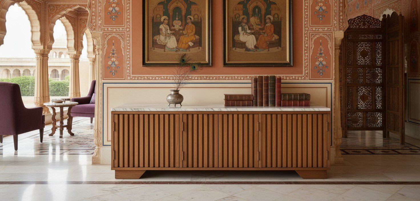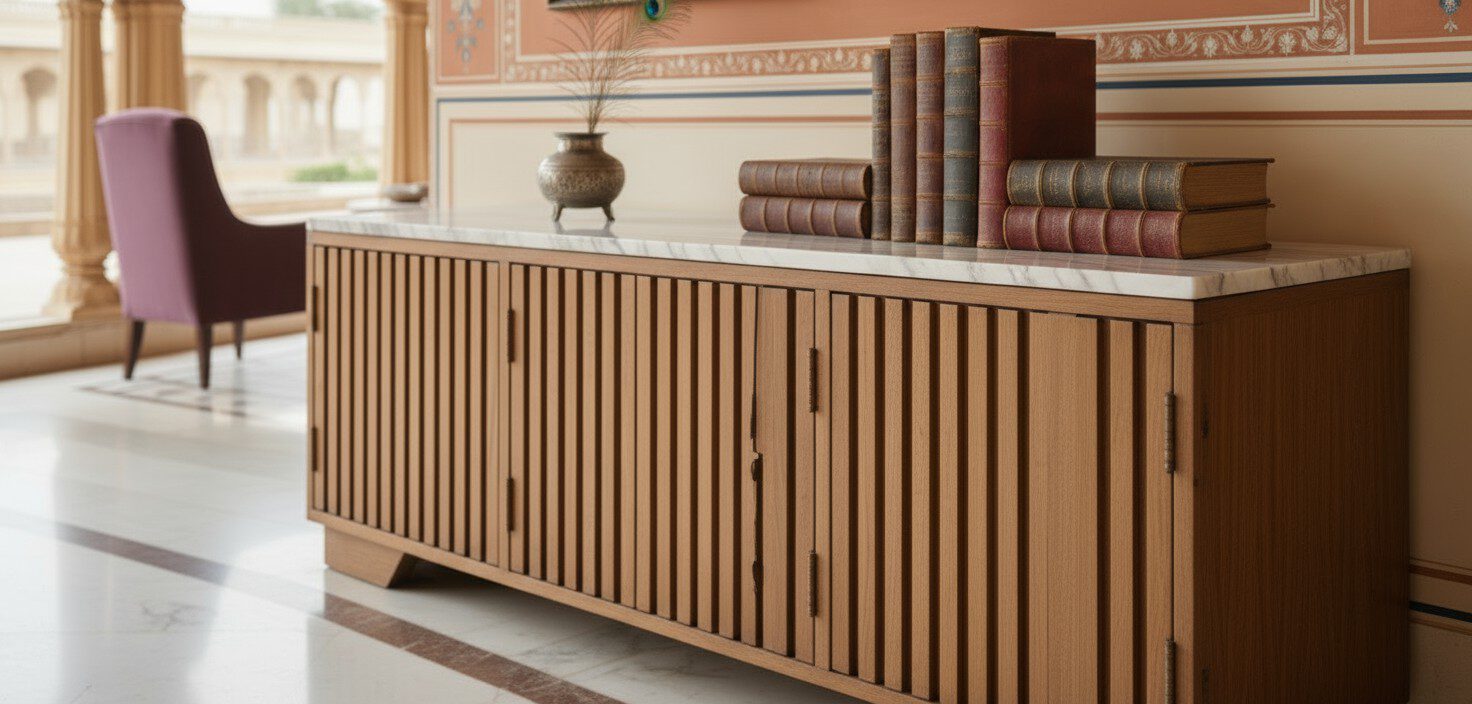 Dhvij International believes that furniture should be alive, becoming a focal point and igniting dialogue. This sideboard, with its distinctive design, embodies this philosophy. The interplay of light and shadow across the ribbed surface, combined with the robust yet elegant form, ensures it will capture attention and admiration. It’s more than just a storage solution; it’s a piece of art designed to infuse your room with personality and a sense of curated style.