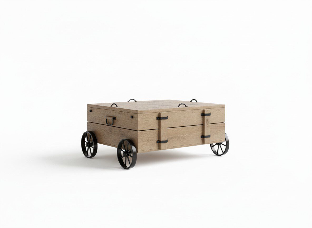 The striking cast-iron wheels and distressed metal hardware are more than just design elements; they are statements of innovation and bold aesthetic. These industrial accents are thoughtfully integrated with the natural wood to create a captivating juxtaposition, a hallmark of Dhvij’s philosophy to make every room come alive. This piece is designed to be a showstopper, infusing your home with character and a unique narrative.