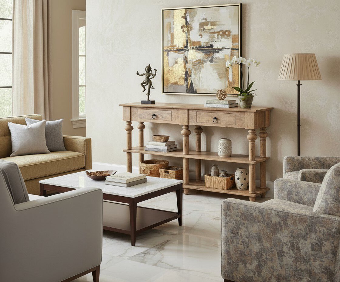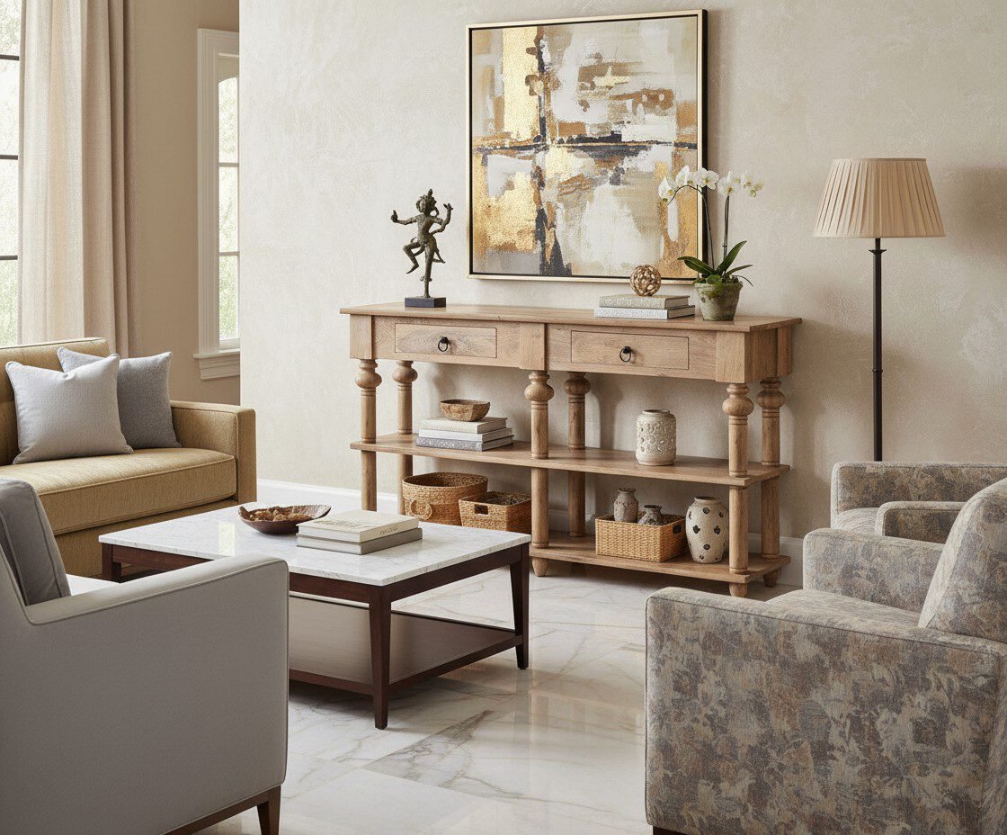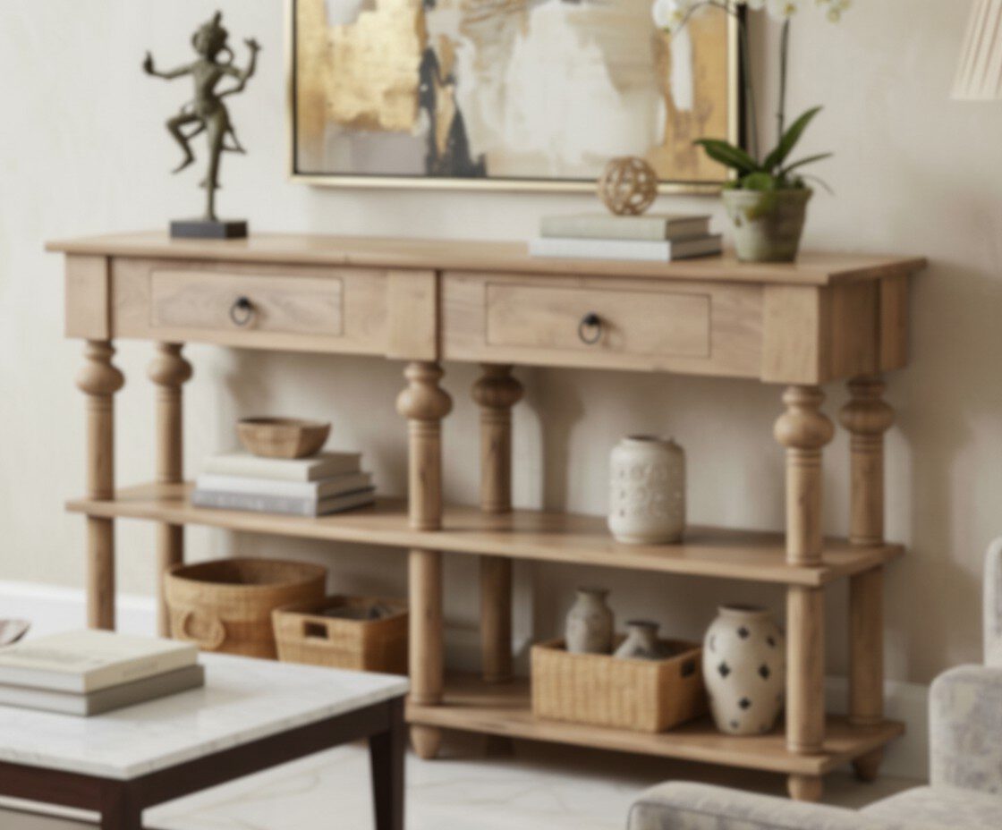 Designed to be more than just furniture, this console is built to infuse life into your home. Its robust construction, evident in the solid wood build and thoughtful detailing, ensures it will be a cherished part of your living space for years to come. It’s a perfect example of uncompromising quality that aligns with Dhvij’s vision to create furniture that performs great things.