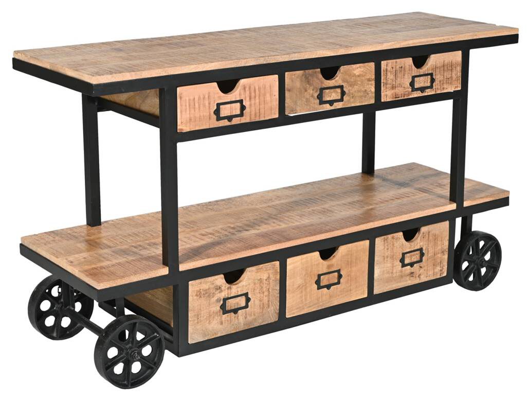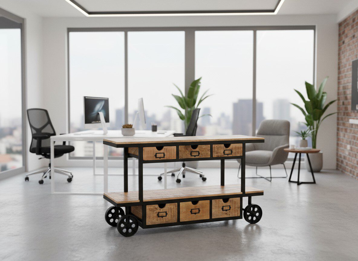 Measuring 140.0 × 65.0 × 40.0 cm, this handcrafted service trolley, with its industrial-chic aesthetic and ample storage, effortlessly transforms any space into a curated gallery, sparking conversations and admiration.