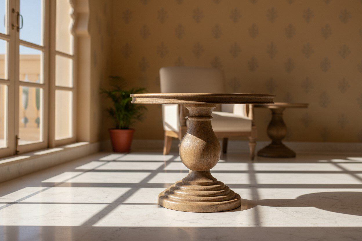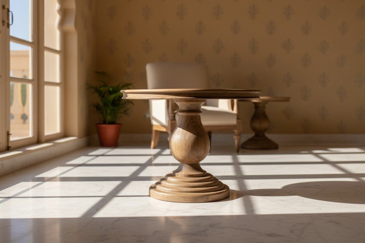 At Dhvij International, we believe furniture should be alive, a conversation starter that transforms a house into a home. This pedestal table, with its sculptural form and inherent warmth, embodies this philosophy. It’s not merely a functional piece but an artistic expression designed to make any room come alive, reflecting the passion and innovation of our skilled artisans who dare to dream and aim higher in every creation.